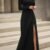 Kadın Uzun Kollu Madonna Yakalı Yırtmaç Detaylı Uzun Ithal Krep Elbise