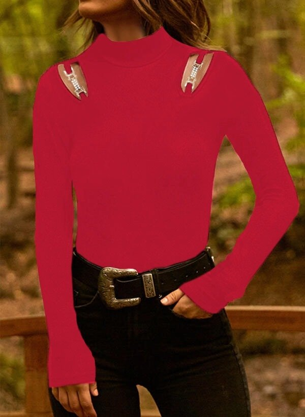 Kadın Uzun Kollu Omuz Dekolte Ve Aksesuar Detay Viskon Bluz