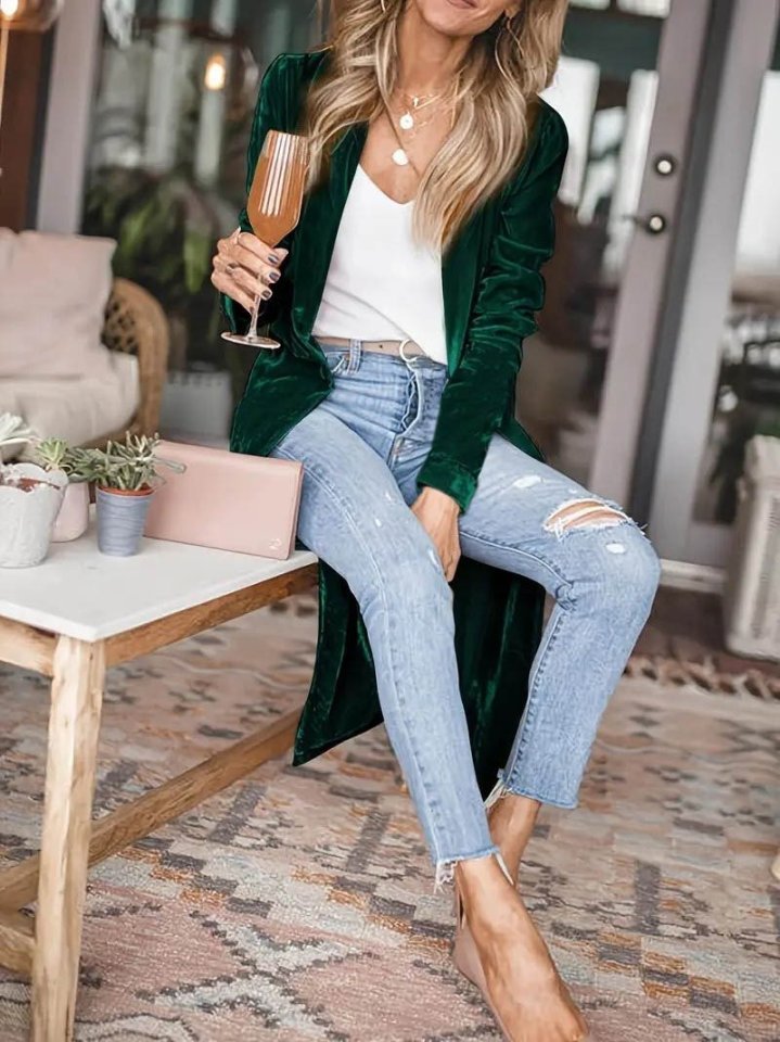 Kadın Uzun Kollu önü Açık Kolları Uzun Midi Ceket