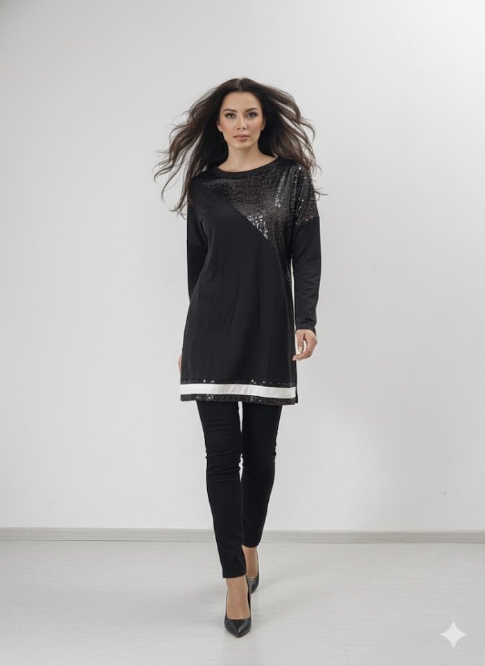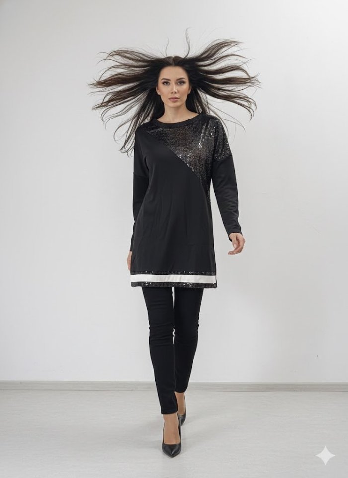 Kadın Uzun Kollu Pulpayet Detay Bluz