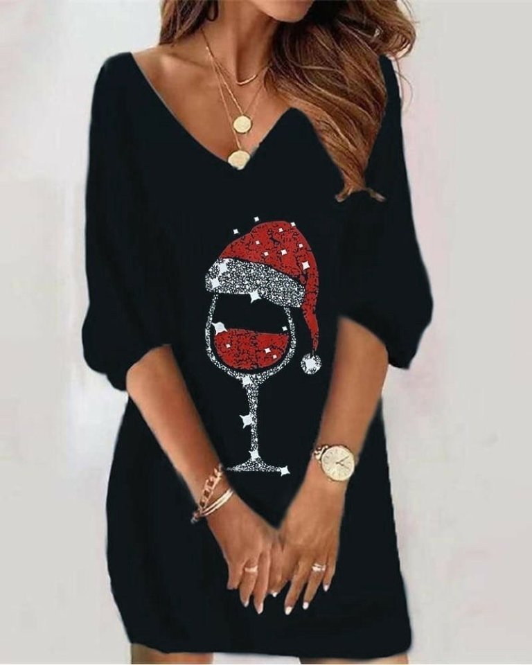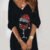 Kadın Uzun Kollu V Yaka Baskılı Dalgıç Kumaş Elbise