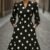 Kadın Uzun Kollu V Yakalı Beli Lastikli Puantiyeli Uzun Krep Elbise