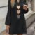 Kadın Uzun Kollu V Yakalı Kalp Desenli Mini Ithal Krep Elbise