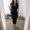 Kadın Uzun Kollu V Yakalı önden Düğmeli Kısa Sandy Elbise