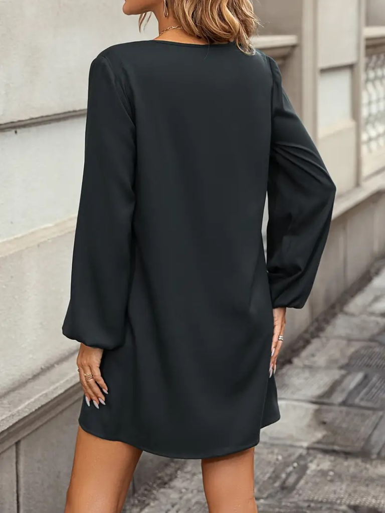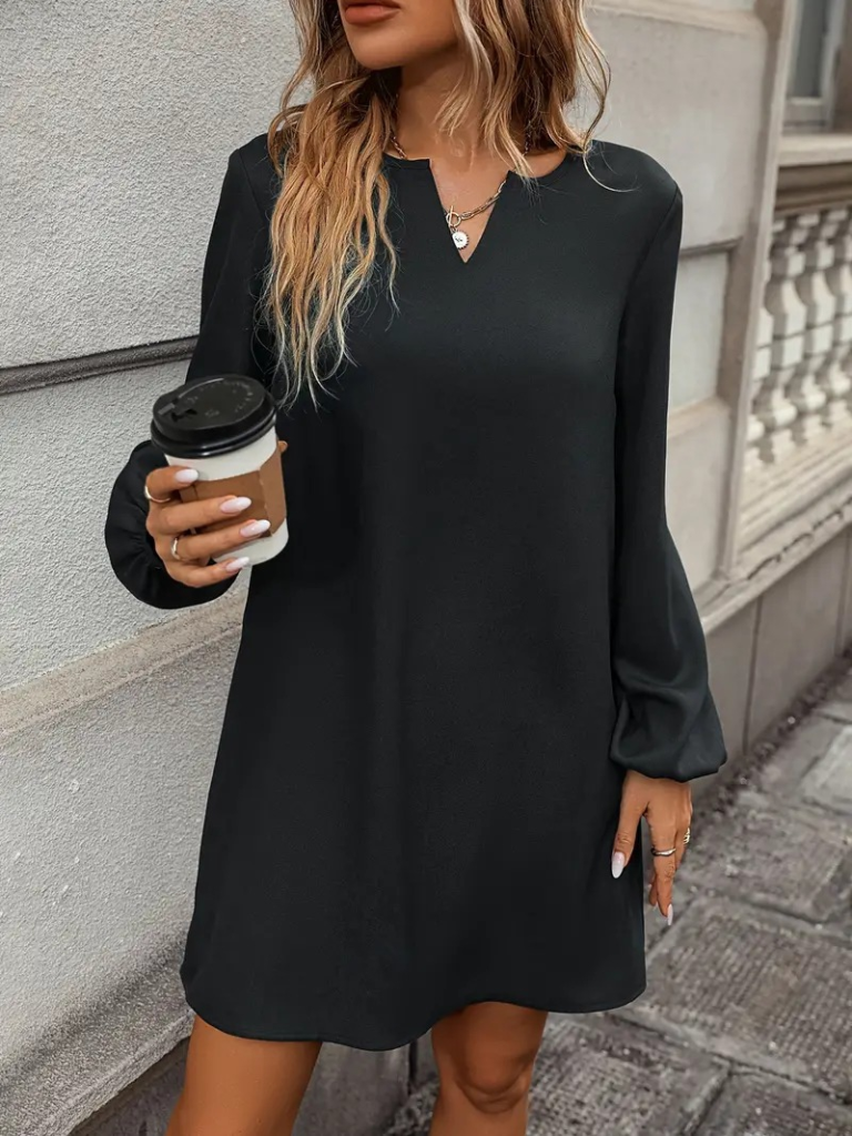 Kadın Uzun Kollu V Yakalı Salaş Ithal Krep Elbise