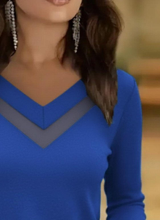 Kadın Uzun Kollu V Yakalı Tül Göğüs Dekolte Detaylı Viskon Bluz
