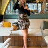 Kadın Uzun Kollu V Yakalı üst Krep Alt Payet Kısa Elbise