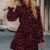 Kadın Uzun Kollu Yakadan Bağcıklı Modal Leopar Desenli Mini Elbise