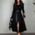 Kadın Uzun Kollu Yakalı Belden Deri Detaylı Kuşaklı Yırtmaçlı Midi Viskon Iki Iplik Elbise