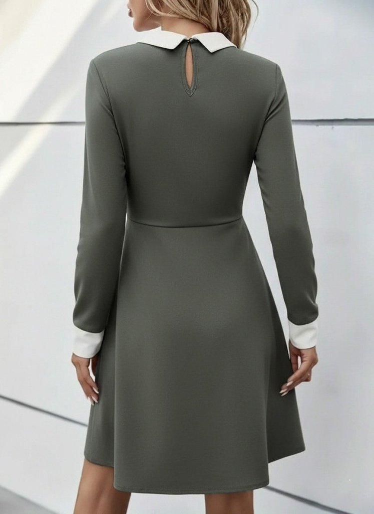 Kadın Uzun Kollu Yakalı Düğmeli çağla Yeşili Modal Mini Elbise