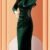 Kadın Uzun Kollu Yakası Açık Yanlardan Büzgülü Taş Detaylı Midi Kadife Elbise
