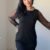 Kadın Uzun Kollu Yakası Yanlardan Hafif Açık Kollar Tül Ve Taş Detay Kısa Krep Elbise