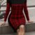 Kadın Uzun Kollu Yanları Siyah şerit Detay Kırmızı Ekoseli Dalgıç Elbise