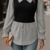 Kadın Uzun Kollu Yarı Balıkçı Yaka Pencere Detaylı Kolları Kalp Desen Taşlı Viskon Bluz
