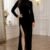 Kadın Uzun Kollu Yarım Balıkçı Yaka Derin Yırtmaç Detay Krep Tam Boy Elbise