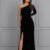 Kadın Uzun Kollu Yırtmaçlı önü Pile Detay Tek Kol Maxi Boy Kadife Elbise