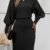 Kadın Uzun Yarasa Kollu Yakası Açık Belden Oturtmalı Kısa Triko Elbise