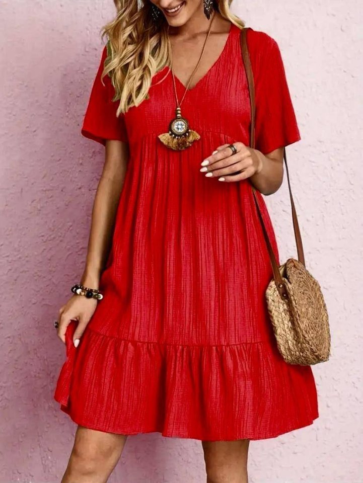 Kadın V Yaka, Fırfırlı Bürümcük Kumaş Elbise