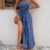 Kadın Yakası Gipe Detaylı önden Yırtmaç Detaylı Desenli Süprem Pantolunetek Tulum