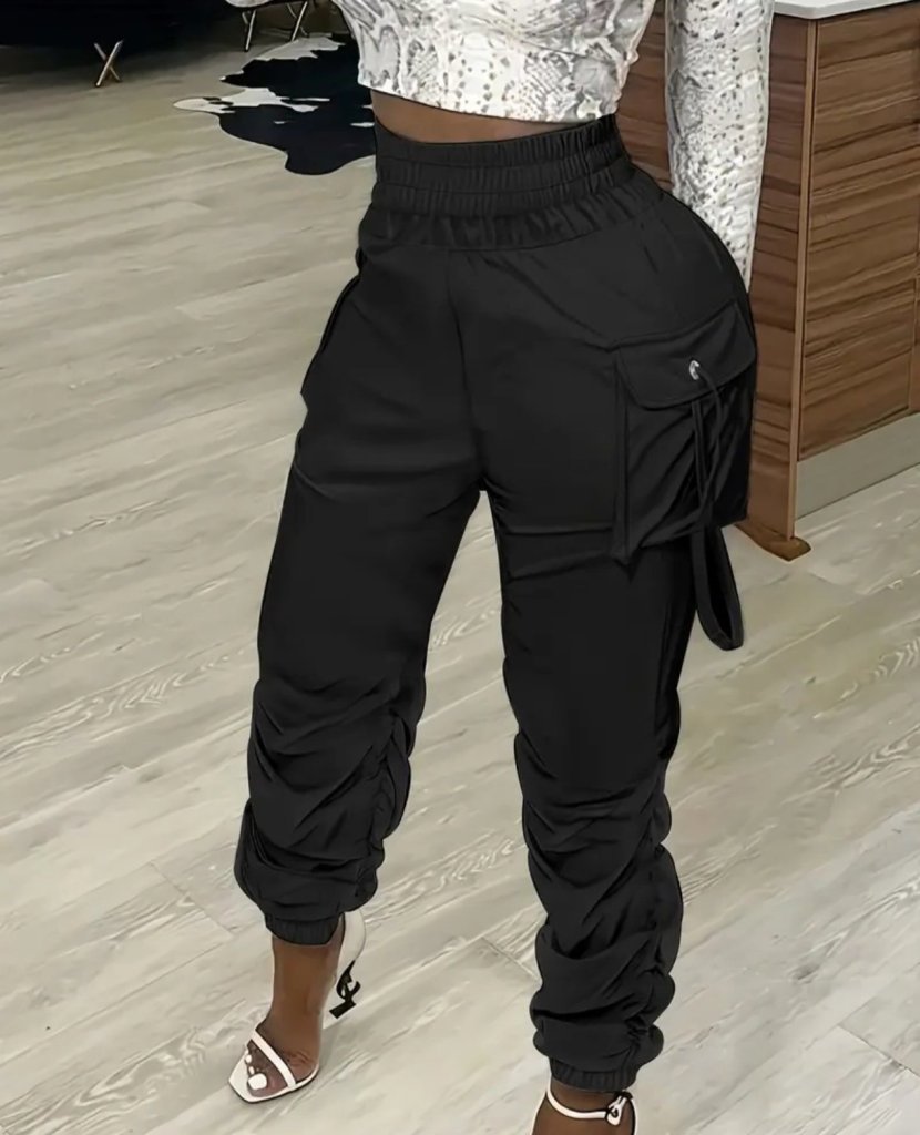 Kadın Yüksek Bel Beli Lastikli Kargo Cep Detaylı Gabardin Pantolon