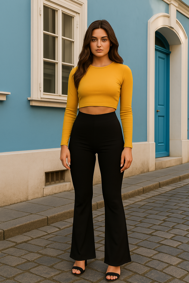 Kadın Yüksek Bel Ispanyol Paça Dalgıç Tayt