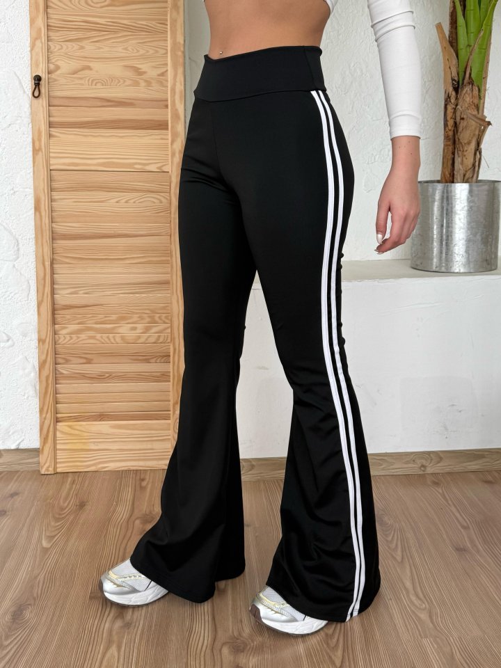 Kadın Yüksek Bel şerit Detaylı Ispanyol Paçalı Dalgıç Pantolon