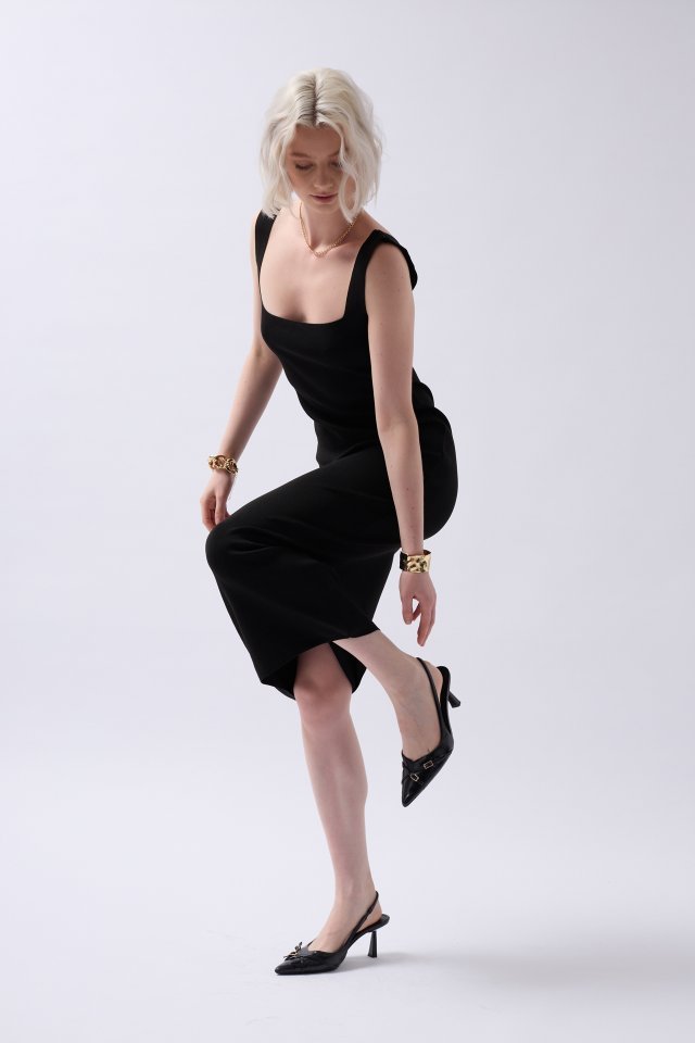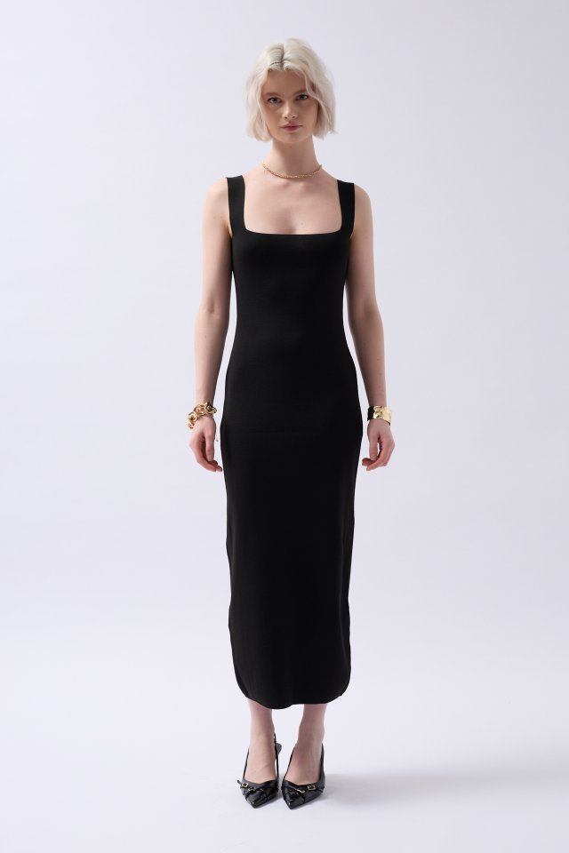 Kalın Askılı Midi Elbise
