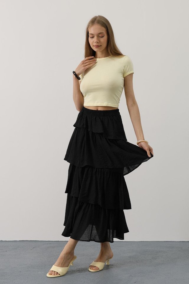 Katlı Kesim Uzun Etek – Siyah