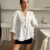 KETEN BLUZ ÖNDEN BAĞLAMALI FIRFIR DETAYLI – Beyaz