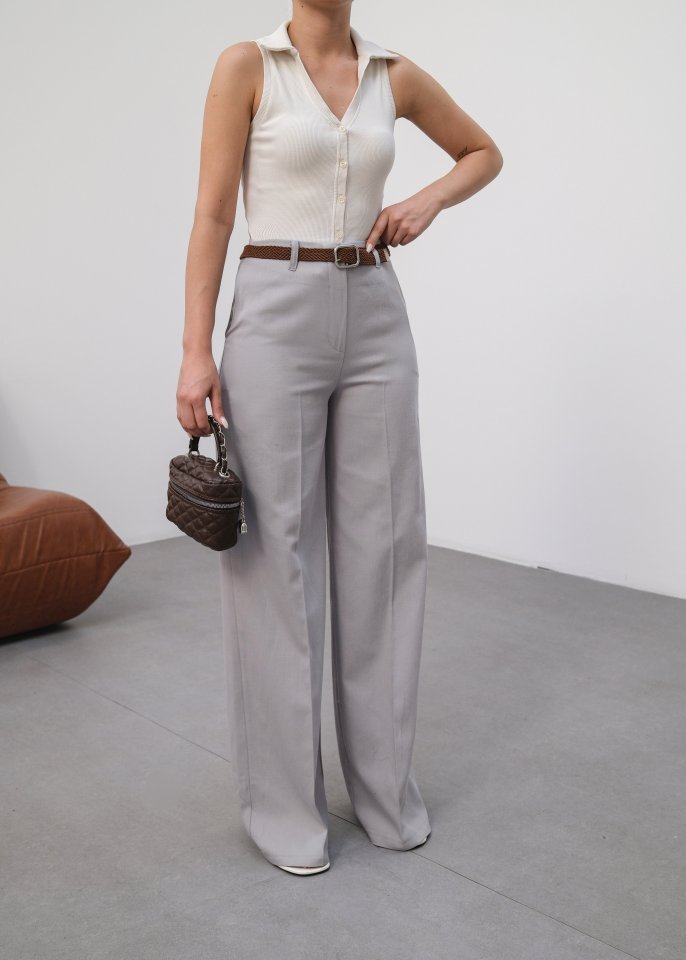 Keten Kemerli̇ Ve Dökümlü Palazzo Pantolon (Kemer Dahi̇l)