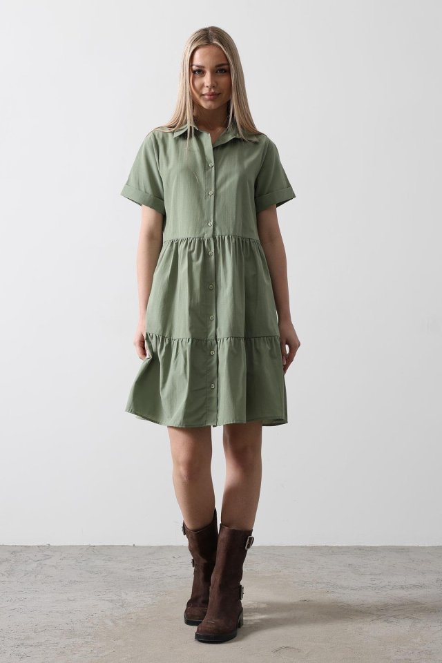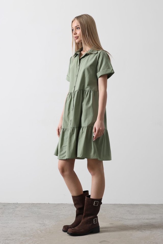 Kısa Kol Düğmeli Elbise – Haki