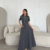 Kısa Kollu Önden Fermuarlı Çan Etekli Uzun Elbise – Antrasit