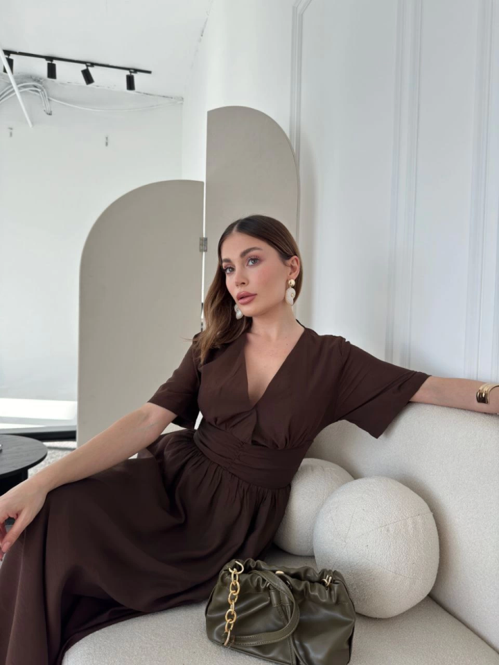 Kısa Kollu Uzun Elbise – Kahve