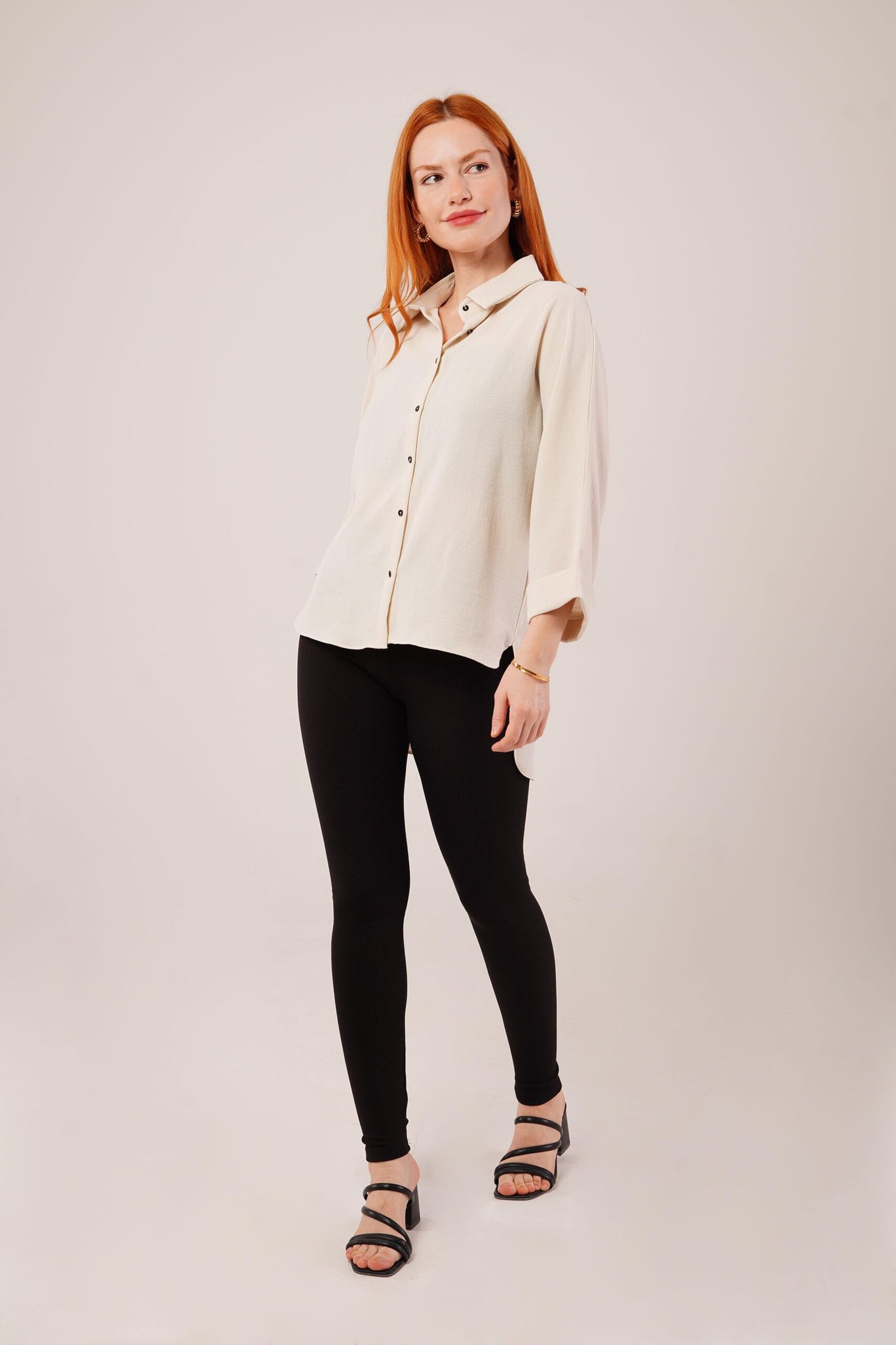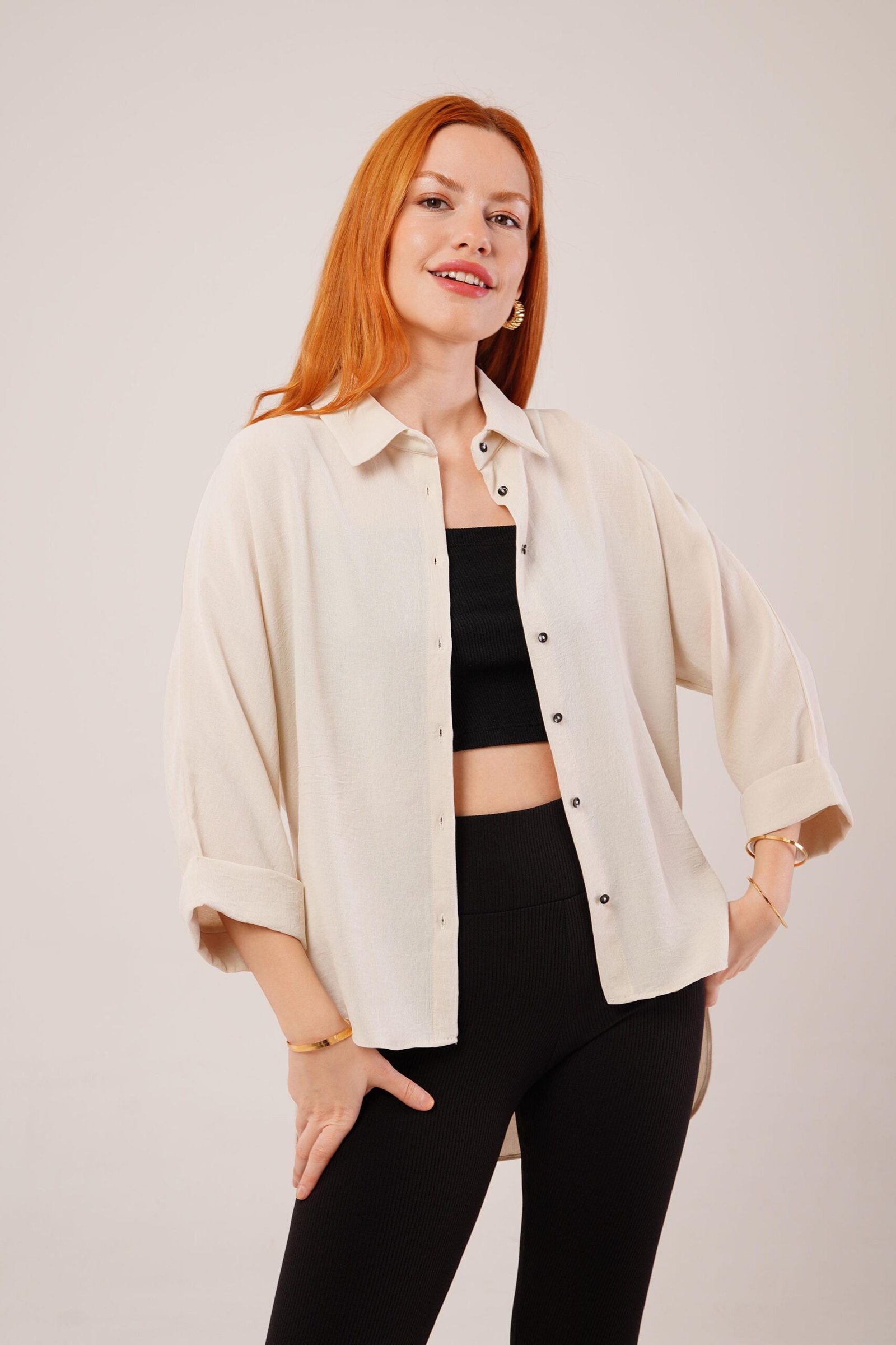 Kol Katlama Detaylı Bej Gömlek