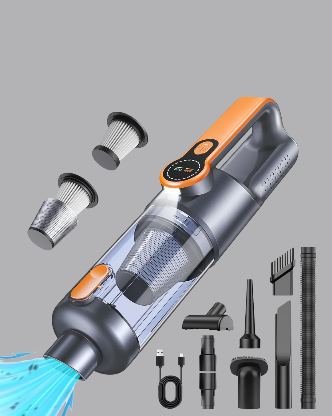 Bu kablosuz el süpürgesi, güçlü motoru sayesinde hem kuru hem sıvı kirleri etkili şekilde temizler. Toz, saç, kırıntı, evcil hayvan tüyü ve sıvı kalıntılarında yüksek performans sunar. Ürünle birlikte gönderilen numaratör hediyesi, düzenleme ve işaretleme ihtiyaçlarında kullanıcıya ekstra avantaj sağlar.USB Type-C ile hızlı şarj imkânı sunan cihaz, tam şarjla 25–30 dakika boyunca kesintisiz temizlik yapabilir. Kablo derdi olmadan kullanım sağlayan kablosuz yapısı, özellikle araç içi ve dar alan temizliklerinde büyük kolaylık sağlar.Set içerisinde bulunan 5 farklı başlık, farklı yüzeyler için özel olarak tasarlanmıştır. Dar uçlu başlık ince boşluklarda detaylı temizlik sunarken, geniş başlık zemin temizliğinde kullanılır. Fırçalı başlık hassas yüzeylerde idealdir; yuvarlak başlık köşe ve kenarlarda etkili sonuç verir. Esnek hortum ise cihazın erişemediği dar alanlara ulaşmayı sağlar.Yıkanabilir toz haznesi hijyenik kullanım sunar ve uzun süreli performans sağlar. Kompakt ve taşınabilir tasarımı sayesinde evde, araçta ve ofiste her zaman elinizin altında bulundurabileceğiniz bir temizlik yardımcısıdır.