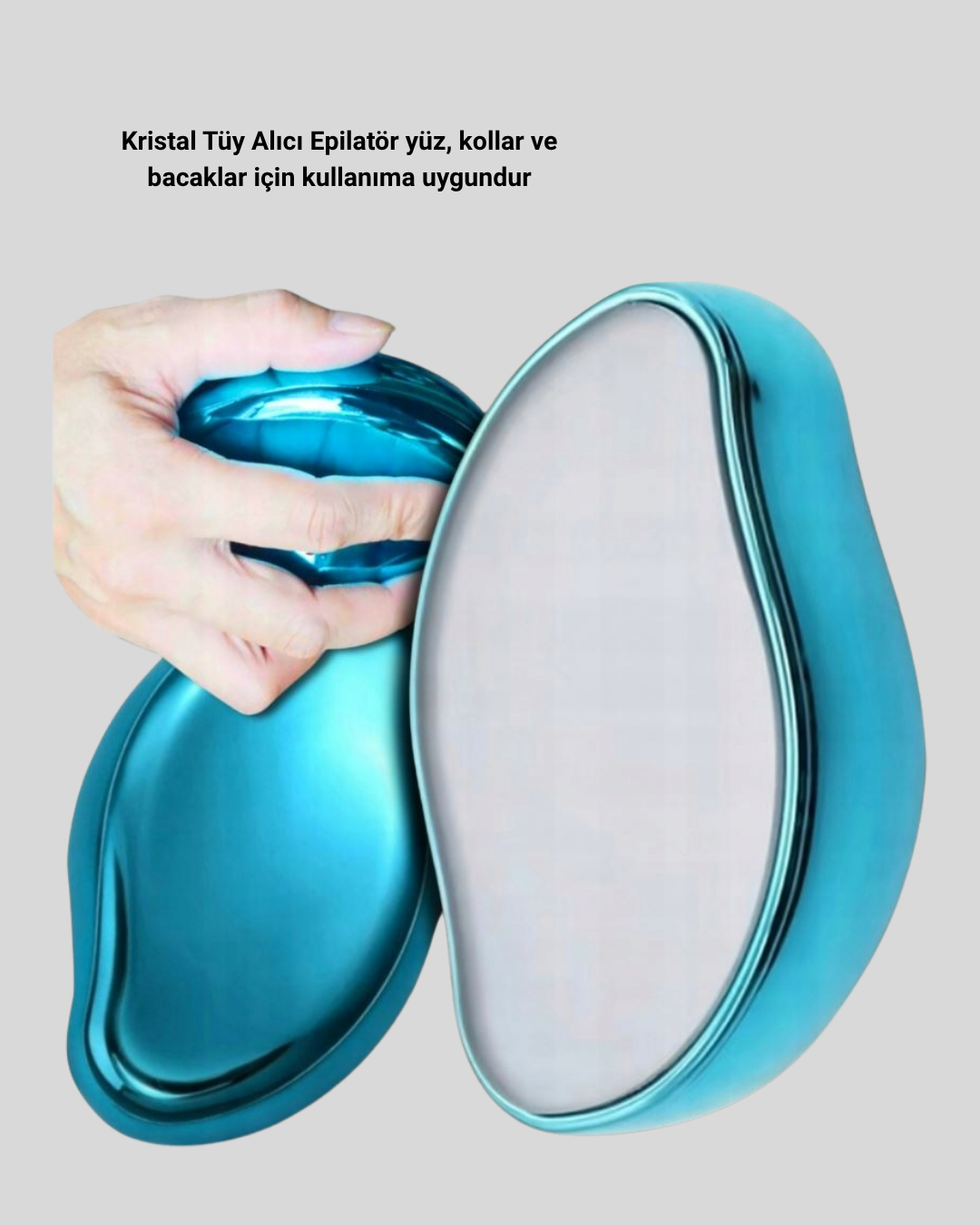 Kristal Tüy Alıcı Epilatör, cilt üzerinde nazik ve etkili tüy temizliği sağlayan tamamen mekanik bir bakım aparatıdır. Kimyasal kullanmadan, ağdasız, köpüksüz ve jiletsiz bir şekilde sadece tek bir ürünle hem tüylerden kurtulabilir hem de cildinizde peeling etkisi yaratabilirsiniz. Yüz, kol, bacak, el ve hassas bölgelerde rahatlıkla kullanılabilir olması ürünü çok yönlü bir bakım aracı haline getirir.Ürünün kristal yüzeyi, cilt üzerindeki tüyleri temasla aşındırarak temizler. Aynı zamanda ölü deri tabakasını uzaklaştırdığı için cilt tonunun daha aydınlık görünmesine katkı sağlar. Haftada 2–3 kez düzenli kullanım; tüylerin daha ince çıkmasına, cildin daha pürüzsüz olmasına ve zamanla daha az tüy çıkmasına yardımcı olabilir.Kullanım oldukça basittir: Tüy alınacak bölge ılık suyla yıkanır ve gözeneklerin açılması sağlanır. Kristal epilatör dairesel ve hafif baskı uygulanarak gezdirilir. Cilde zarar vermeyen bu mekanizma tahrişi azaltır ve acısız bir işlem sağlar. İşlem bittikten sonra cihaz yalnızca suyla durulanarak temizlenebilir. Ardından bölgeye nemlendirici sürülmesi cildin daha rahatlamış ve yumuşak kalmasını sağlar.Epilatör aynı zamanda pedikür etkisi oluşturarak topuklarda biriken ölü deriyi temizlemek için de kullanılabilir. Böylece hem tüy alma hem cilt bakım işlevini bir arada sunar.Taşınabilir, hafif ve kompakt yapısı sayesinde seyahatlerde ve günlük yaşamda yanınızdan ayırmak istemeyeceğiniz bir üründür.Krem, jel, tıraş köpüğü veya elektrik gerektirmeden çalışan bu kristal epilatör, ekonomik ve çevre dostu bir bakım çözümü sunar. Acısız, pratik ve hızlı tüy alma deneyimi arayan kullanıcılar için mükemmel bir tercihtir.