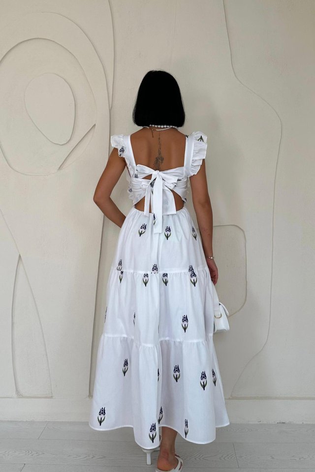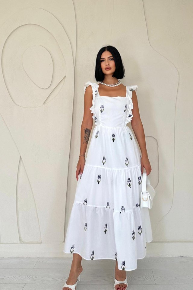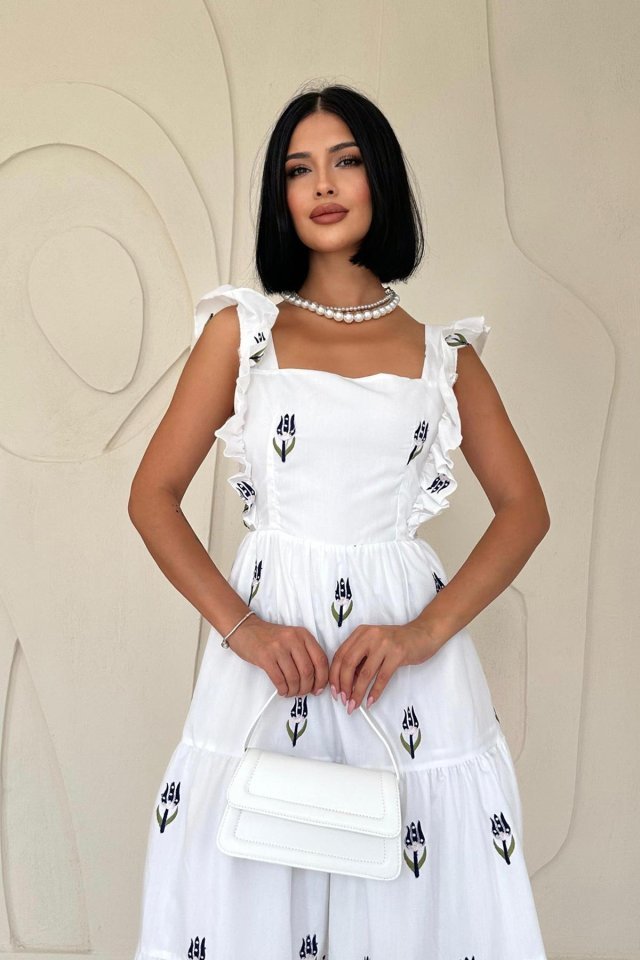 Lacivert Sıfır Kol Fırfırlı Elbise