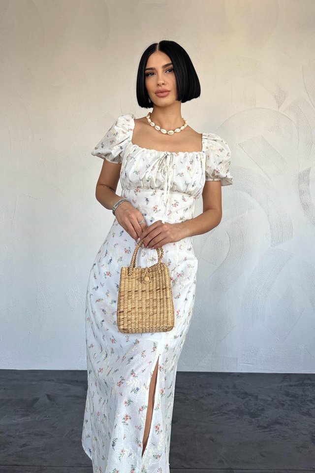 Lila Çiçekli Yazlık Elbise