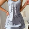 Love Baskılı Gri Saten Şortlu Gecelik Takım