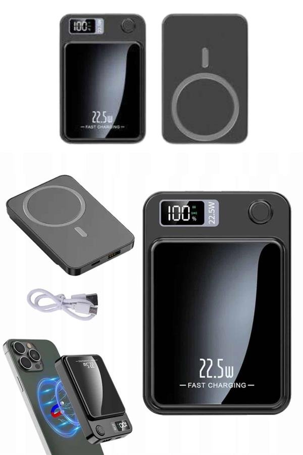 Magsafe Powerbank 10.000 mAh 22.5 Watt Hızlı Şarj Göstergeli Kablosuz Taşınabilir Şarj