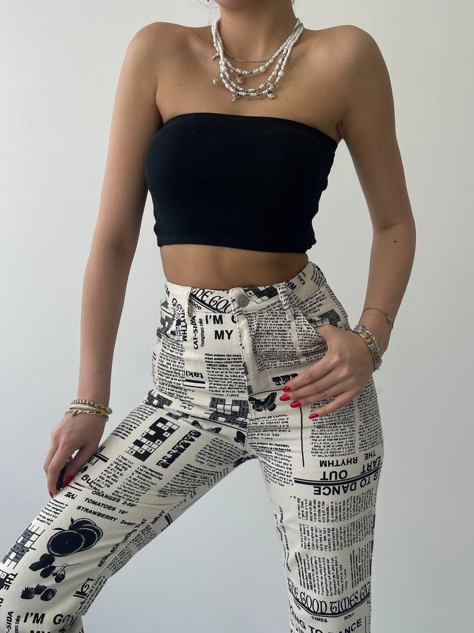 Novıne Gazete Desenli Pantolon