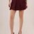 Önü Piliseli Yandan Bağlama Detaylı Bordo Mini Şort Etek