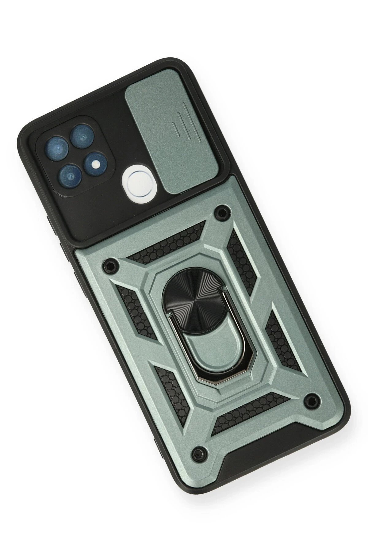 Oppo A15 Kılıf Pars Lens Yüzüklü Silikon - Yeşil-(5796)