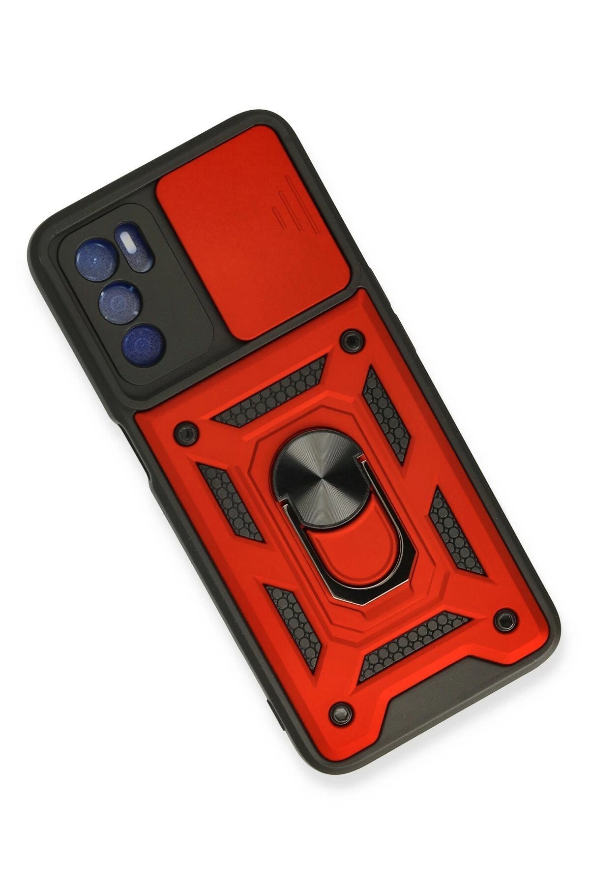 Oppo A16 Kılıf Pars Lens Yüzüklü Silikon – Kırmızı-(5796)