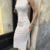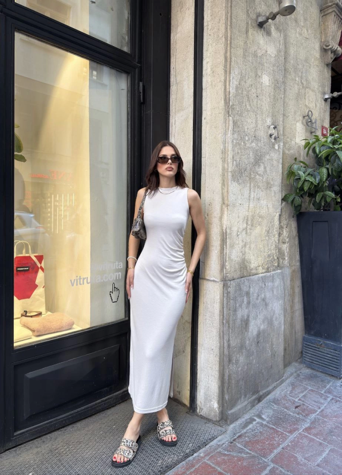 Osy Modal Yumuşak Dokulu Kumaş Bisiklet Yaka Sıfır Kolsuz Yırtmaçlı Uzun Elbise – Beyaz