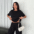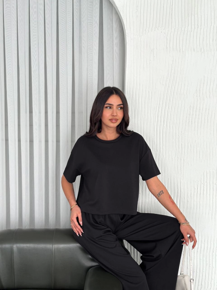 Osy Modal Yumuşak Dokulu Kumaş Bisiklet Yaka T-shirt Bol Paça Pantalon Ikili Takım -Siyah