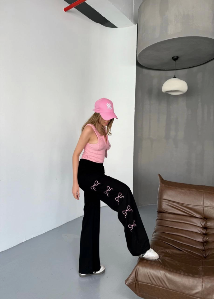 Osy Modal Yumuşak Dokulu Kumaş Nakış Işlemeli Rahat Bol Paça Eşofman Pantalon – Siyah