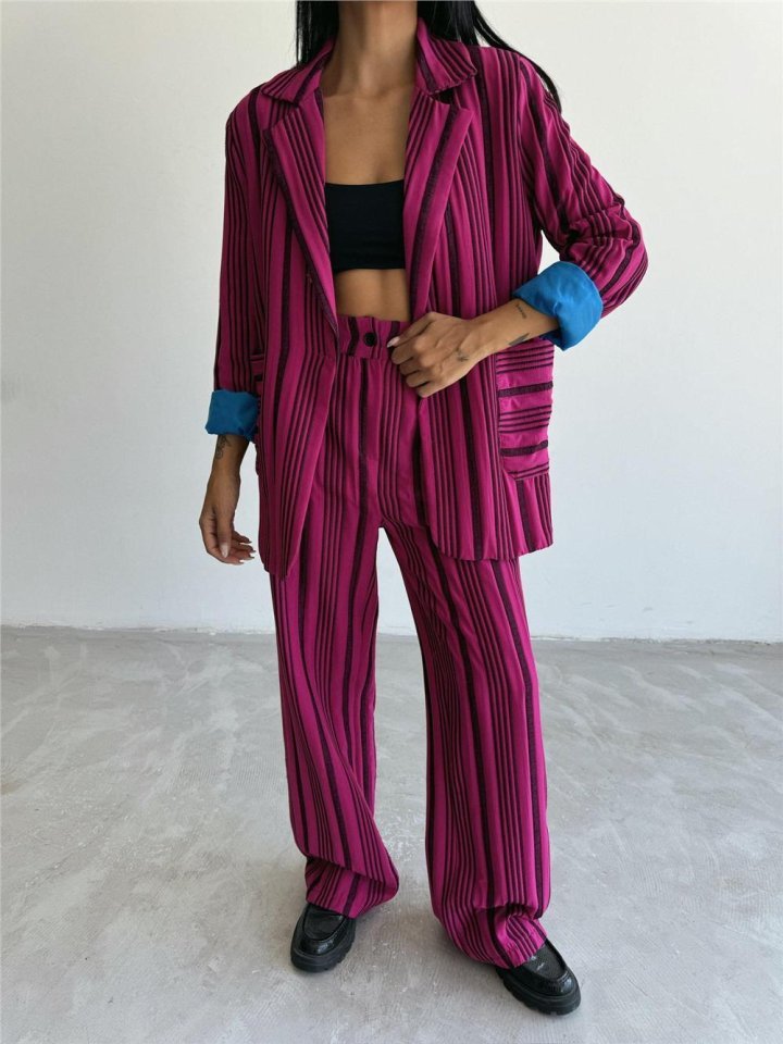 OTTOMAN ÇİZGİLİ CEKET-PANTOLON TK – Fuşya