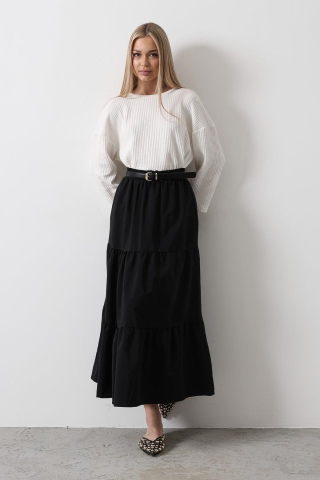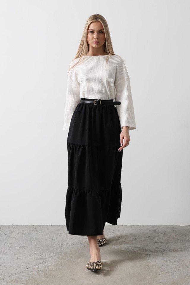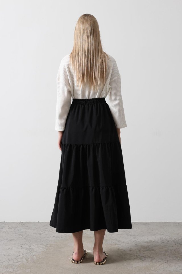 Pamuklu Beli Lastikli Etek – Siyah
