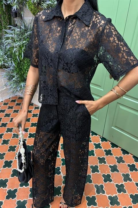 Pantolonu Astarlı Dantel İkili Takım 10119